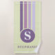 Retro Stripes Purple Mint Monogramme Nom Serviette de plage personnalisée. Personnalisez ce design personnalisé avec votre propre nom.