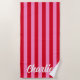 Serviette De Plage Rouge rose gras rayures personnalisées nom rétro