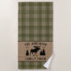 Une belle serviette de plage à thème rustique, avec votre nom de famille et cabine, lodge, cottage ou autre texte désiré et sa date établie. Ce design unique et personnalisé présente une silhouette d'orignal et de pins sur un imprimé de style burlap, accentué par de beaux paysages français recouverts de doux tons d'herbe et de vert sauge. Pour voir d'autres modèles comme celui-ci, n'hésitez pas à visiter ma boutique ici à "Zazzle.com/Rustic_Charm". Merci .