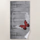 Profitez de votre journée à la plage ou au bord de la piscine avec une serviette de plage personnalisée Red Butterfly Rustic. Le design des serviettes comprend un papillon animé reposant sur un feuillage délicat et un espace pour ajouter votre nom à un arrière - plan en bois rustique. Autres cadeaux disponibles avec ce design ainsi qu'une variété de couleurs.