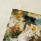 Les libellules multicolores magnifiques déménagent sur un arrière - plan inspiré rustique. De ma copie originale de collograph.