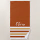Serviette de plage personnalisée avec un motif rayé couleur sable tendance.