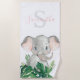 Safari dans la jungle des éléphants Beach Towel Cute blue éléphant safari animal avec feuilles de jungle pour les enfants ou comme un cadeau pour les amoureux des animaux. Ça fait un grand cadeau ! Créez et Customisez rapidement Votre serviette éléphant cliquez sur le bouton "Customisez-le!" pour modifier la taille du texte, la couleur du texte, le style de police et plus encore!