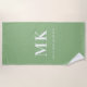 Serviette De Plage Sage vert blanc nom monogramme initiales