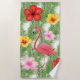 Cette serviette de plage est montrée dans les fleurs assez tropicales et la conception de flamant.
