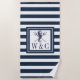 Serviette De Plage Signe de la mer Cheval Marin Bleu Nuit Rayé Monogr