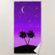 Une silhouette noire de palmiers contre un violet crépusculaire avec un croissant de lune et d'étoiles