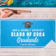 Cette serviette de plage moderne bleu ciel et blanc personnalisé senior graduation party propose une typographie classe et votre nom de collège pour la classe de 2025 et blanc Varsity lettres. Customisez avec votre nom de diplômé sous l'écriture manuscrite chic et le casquette gris pour un grand cadeau de souvenir.
