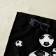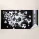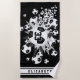 Cette amusante serviette de plage sur le thème du football présente une "explosion" de balles de football de taille variée et des formes d'étoiles grises, noires et blanches sur un arrière - plan noir - un motif de pois blancs minuscules couvre l'étoile noire - customiser avec le numéro de maillot de l'athlète sur les balles de football graphique et nom sur bandes de varsité blanche orientées verticalement - par katz_d_zynes