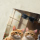 Sur La Photo, Quatre Chats Sont Assis Autour D'Une Table Avec Une Pizza Prêt À Manger.