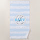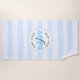 Elégant et doux rayures bleues et blanches avec des points de confettis bleu clair et un monogramme rond avec un nom de bébé garçon. Personnalisez en changeant le texte.
