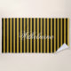 This stylish black towel with metallic gold stripes can be personalized with your name for a bold, elegant look. Made from soft, absorbent fabric, it’s perfect for beach trips, pool days, or spa sessions. The striking black-and-gold design paired with custom personalization makes it a practical yet luxurious gift for anyone who loves to stand out.