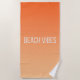 VIVIDLUXE Style Décontracté moderne. Portez le coucher de soleil avec vous jusqu'au rivage ! Cette serviette de plage bénéficie d'un dégradé doux allant de l'orange foncé au beige doux, reflétant l'éclat chaud d'une soirée de plage parfaite. La typographie "BEACH VIBES", audacieuse et moderne, fait une déclaration élégante. Cette grande serviette absorbante est votre compagnon indispensable pour les journées ensoleillées à la plage ou au bord de la piscine.