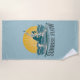 This coastal blue towel is perfect for your next beach day, paddle or yoga session. Sunrise Flow features a woman practicing paddleboard yoga as the golden sun is rising and the teal blue sea ripples as she poses confidently in reverse warrior on her board. The light distressing, font and color combination give this graphic a retro surf shack vibe.