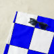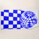 à damiers motif en bleu et blanc. L'illusion optique d'une sphère arrondie déforme les carrés pour qu'ils se courbent en forme de boule.