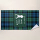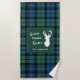 Cute home sweet home serviette de plage vous pouvez facilement customiser en cliquant sur le bouton "Personnaliser", Avec silhouette de cerf et clan Campbell tartan en vert, et chèque bleu. Fait un grand cadeau de ménage