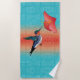 Serviette De Plage Tatouage Colibri Rouge hibiscus Fleur Turquoise