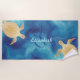 Serviette De Plage Tortue d'or Tribal Blue Aquarelle Monogram Beach