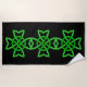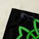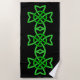 Cette serviette de plage personnalisée a trois noeuds Celtic Irlandais verts vibrants entrelacés sur un arrière - plan noir.