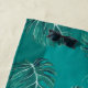 Turquoise palmier feuille tropical hawaïen motif avec aloha script sur un arrière - plan vert océan vibrant faisant un élégant élégant ensemble tendance serviette de bain d'été. ++++++++++++++++++ Personnalisez-le avec vos initiales de nom de monogramme de script et votre signature.