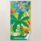 Voici notre charmant "Tropical Paradise" Beach Towel, conçu pour vous transporter sur des rivages baisés par le soleil et des palmiers balançoires. Dotée d'un kaléidoscope de couleurs, cette serviette présente un thème tropical luxuriant, avec des fleurs exotiques, une faune ludique et des vagues océaniques tranquilles. Ce qui distingue cette serviette est ses éléments personnalisables. Avec l'espace pour personnaliser le nom de votre île ou de votre destination de plage préférée, ainsi que l'année de votre visite mémorable, il devient un souvenir précieux de votre escapade tropicale.