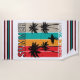 Audacieux, énergique et plein d'esprit d'été, ce design vibrant capte l'excitation d'une aventure tropicale. Les tons rouge et orange vif côtoient des rayures turquoises et beiges cool, ouvrant la voie à une silhouette de surfeur se promenant vers les vagues. Des palmiers dominent la scène, tandis que la typographie ludique met l'accent sur l'essence insouciante de l'ÉTÉ et du COUCHER DE SOLEIL TROPICAL. Ce look dynamique est parfait pour tous ceux qui vivent pour des soirées chaudes, des brises océaniques et l'appel interminable du surf.