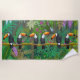 Si vous êtes à la piscine à la maison, sur la plage ou sur une croisière, cette serviette de plage tropicale fraîche de conception regardera grand et vous maintiendra confortables. Comporter l'illustration fine originale des oiseaux de toucan de Toco dans la jungle par l'artiste Carolyn McFann de concepteur et de faune.