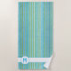 Serviette de plage turquoise, Bleu, Vert et Blancs. Craquant et contemporain avec une ambiance années 70. Une pièce design pour compléter votre décor de piscine ou une journée à la plage. Ajoutez un nom ou changez le monogramme pour customiser. Des accessoires sont disponibles gratuitement.