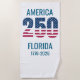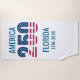 Claim your spot on the sand or by the pool with this patriotic beach towel, celebrating America's historic 250th anniversary in 2026 and showcasing your love for the state of Florida. The design features a bold "250" with American flag stars and stripes, along with the text "AMERICA" and "FLORIDA".