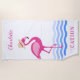 Serviette De Plage Vacances monogramme Flamant rose rose vagues