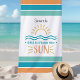 Célébrez les vacances d'été ou l'évasion d'une fille au bord de la mer avec cette serviette de plage amusante qui présente une illustration simple du soleil et des vagues de l'océan, des bandes de couleur tropicale audacieuses et deux espaces de texte personnalisables. Ajoutez un nom et un texte supplémentaire pour créer un souvenir amusant qui rappellera les bons souvenirs de vacances chaque fois que vous utiliserez cette serviette.
