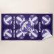 Cette amusante serviette de plage à thème volleyball dispose d'un motif de volleyball stylisé violet et blanc arrangé en motif miroir avec texte personnalisable entre les volleyballs, actuellement nom de l'équipe et nom de la mascotte - le nom de l'athlète et numéro de maillot peuvent être personnalisés, ainsi que l'arrière - plan violet foncé - par katz_d_zynes