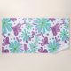 Laissez-vous envoûter par le luxe et laissez-vous surprendre par notre serviette de plage unique violet et aqua fleurie.