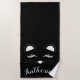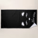 Votre diva intérieure ou la diva de votre vie va adorer le tour de plage de visage de chat noir et blanc conçu par Enchantfancy Design Company. Cette élégante serviette de plage présente un visage spectaculaire de chat avec de gros cils et un nez en forme de coeur. Personnalisez avec votre choix de nom ! Les Amoureux de les chats vont adorer ce glam noir et blanc design kitty.