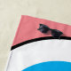 Une serviette amusante et étrange pour la plage ! Arrière - plan rose (que vous pouvez changer !) et un gros globe oculaire bleu et il dit "voici qui vous regarde".