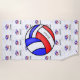 Motif d'un volley-ball rouge, blanc et bleu volant au-dessus d'un filet portant votre nom.