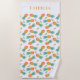 Serviette de plage blanche avec un design motif à la mode de pineappes tropicales et imprimé de nom personnalisé en haut.