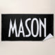 Serviette De Plage Votre nom, texte gras blanc | Noir