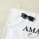 Voyage de fin de semaine pour les filles thème de vin rose personnalisé Beach Towel. Ajoutez votre propre destination et une citation amusante. Moins cher que la thérapie. Conception silhouette verre et bouteille pour la fête de bachelorette, douche nuptiale, Anniversaire, mariage, cueillette de vignobles, voyage vinicole, vacances, escapade, escapade, sorties pour filles, etc. Design élégant avec modèle de texte élégant et monogramme de nom. Couleurs roses et noires personnalisables.