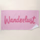 Made for travelers, adventurers, and daydreamers, this Wanderlust beach towel is the perfect accessory for those who love dollcore style and girl power magic. The pretty in pink retro inspired text has a gentle textured look and red reflection that pops on the doll pink background. This towel is perfect for your next beach day, pool party or vacation.