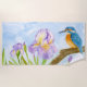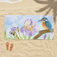 Serviette De Plage Watercolor Kingfisher with Purple Irises