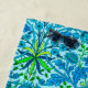 Serviette de plage dans un vintage William Morris motif d'hyacinthes, tulipes et feuilles, dans les tons bleu profond cérulean et cobalt, accentué de bleu marine, jaune et vert citron vert, sur un arrière - plan pastel bleu ciel