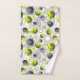 Un essuie-tout pratique avec un motif moderne de pickleball vert citron et boule de pickleball grise sur un arrière - plan de lignes d'intersection noires. Un cadeau parfait pour un joueur de pickelball.