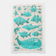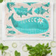 Poisson amusant, baleine, crabes et étoiles de mer en aqua et couleurs turquoises avec arrière - plan couleur sable. L'accent parfait pour votre cuisine côtière ou de maison de plage ou divertissant.