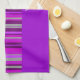 Serviette de thé rose et pourpre lumineuse de cuisine de conception de rayure. Customisez pour ajouter votre nom ou pour posséder le texte et d'autres options.