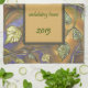 Feuille onduleux, art par Kristie Hubler, avec le calendrier 2015 sur une serviette de thé de cuisine. Ce feuille est pour des framboises. En verts, les or de chameau, loden, et les bigorneaux foncés. La générosité de la nature. Une promenade par les bois. Bruir le feuille.