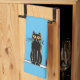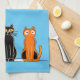 Trois chats dans une adorable serviette imprimée en bloc. Le design est mis en miroir afin que vous puissiez voir le design complet lorsque la serviette est suspendue dans la cuisine.