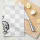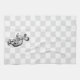 Serviette de cuisine de 16" x 24" avec une image vintage du Dodo "Alice au pays des merveilles" sur un damier gris et blanc.