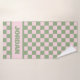 Serviette en damier rose et vert avec nom personna