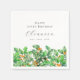 Décor de table parfait pour une fête d'anniversaire de décembre. Holly est la fleur de naissance pour ce mois-là. Il forme une jolie bordure de fond d'aquarelle sur cette serviette personnalisée festive. Le nom, l'âge et la date de naissance du célébrant d'anniversaire sont placés au-dessus de celui-ci à l'aide d'élégantes calligraphies et typographies. Tout le texte est modifiable.